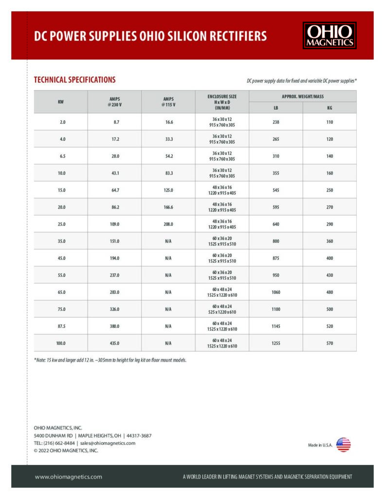 Ohio Model MC-1.5A & MC-2.0A Auto/Manual Drop Magnet Controller